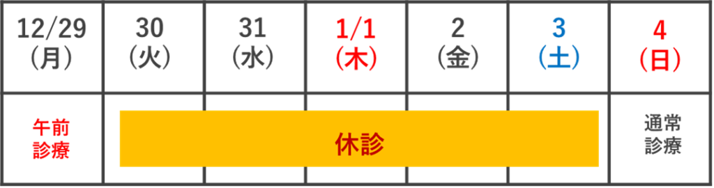 年末年始の診療につきましては、以下のような日程となります。